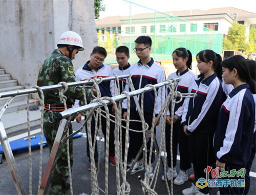 活動中,同學們在消防官兵的帶領(lǐng)下學習了消防結(jié)繩、水帶連接等簡單基本的消防業(yè)務(wù)技能,詳細講解了一些其他常規(guī)消防器材的用途及操作方法,熟練的操作技能贏得了在場同學的陣陣掌聲。并在觀摩完消防官兵訓練后主動幫助整理水帶、打掃營院衛(wèi)生。課余時間,消防官兵與同學們開展了富有消防特色的水帶保齡球、搶凳子和籃球、羽毛球等文體活動,在歡聲笑語中給嚴正以待的消防官兵送去了舒緩壓力的溫暖。